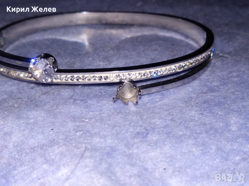 СРЕБРИСТА МОДНА АРТ ГРИВНА с ФАСЕТИРАНИ БЛЕСТЯЩИ КРИСТАЛИ 37444