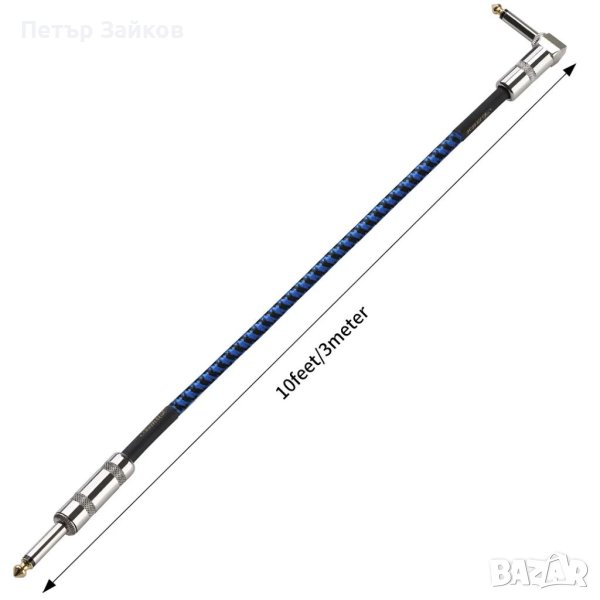 Кабел за бас китара Asmuse под прав ъгъл (3 м, 2 бр.-жълт и син)