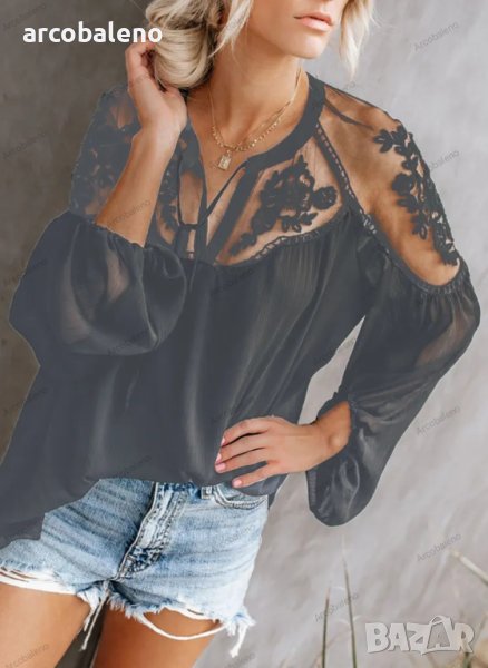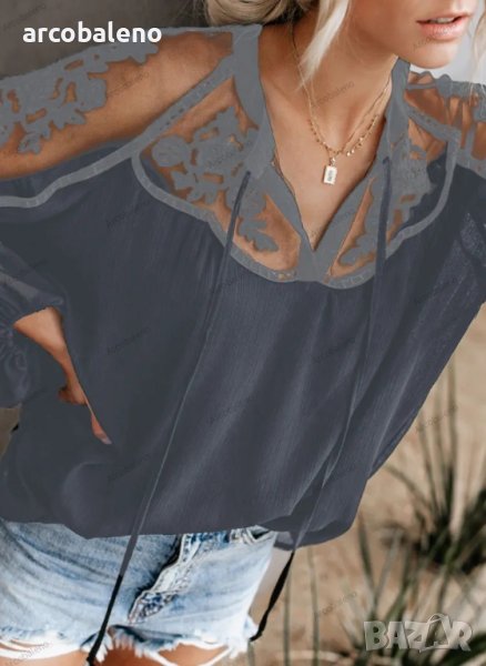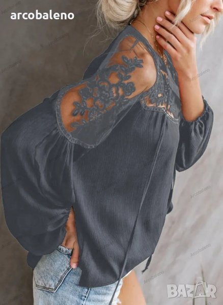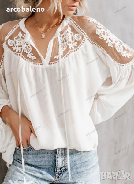 Дамска дантелена риза с V-образно деколте, 2цвята