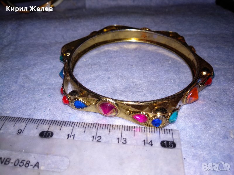 ЗЛАТИСТА ЕТНОГРАФСКИ СТИЛ ЕФЕКТНА СТОМАНЕНА РЕТРО ГРИВНА с ФАСЕТИРАНИ ЦВЕТНИ КРИСТАЛИ 38004