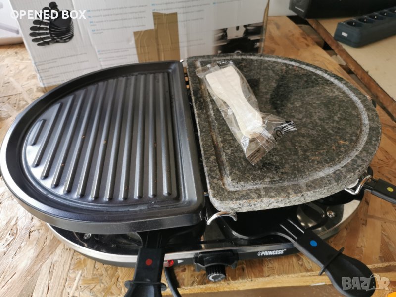 парти раклет Princess Oval Stone, 8 тави за раклет, 8 дървени шпатули, ръководство за употреба