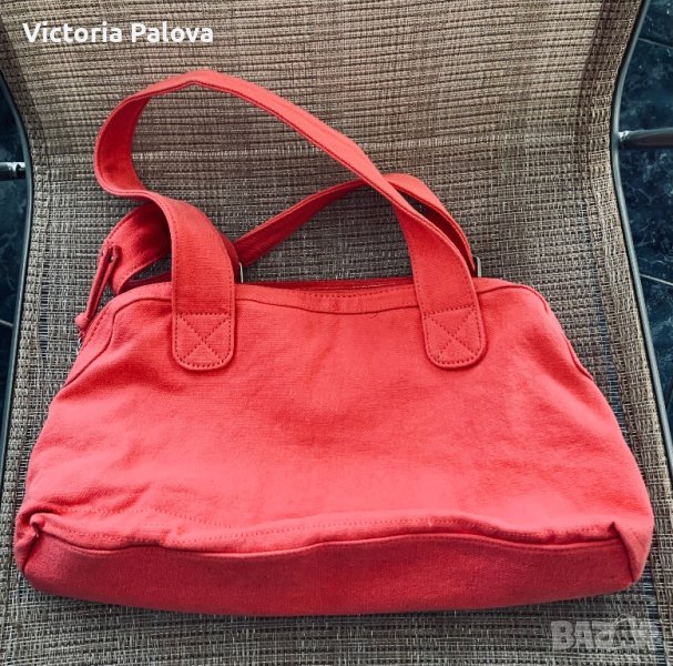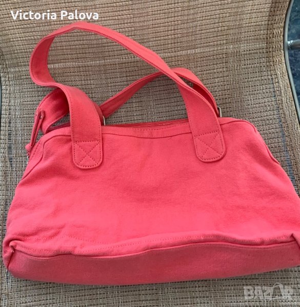 Чантата е неупотребявана,много красива и удобна-широки дръжки,стесняващи се към средата-по този начин дръжките “залепват”за рамото,и чантата не пада от него.широка е 40см,височина-23-24см,три джоба вътре(единият е с цип),два джоба отвън.дъното е широко 10см,дълго-37см.