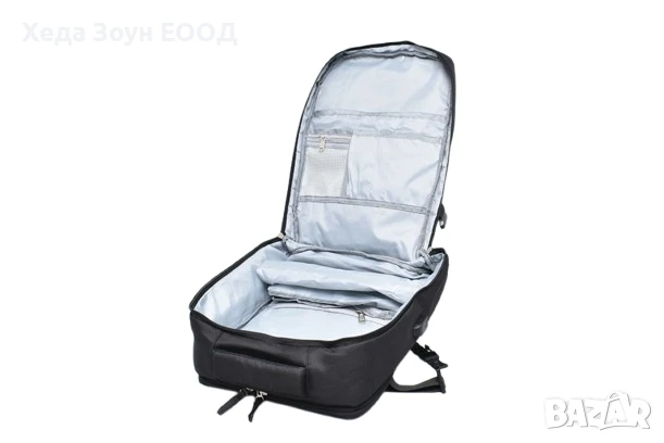 С USB порт и USB кабел, два лицеви джоба с цип, един страничен джоб, джоб с цип на гърба и дръжка за ръка.