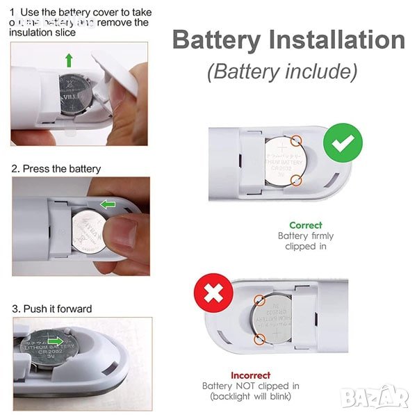 Тази везна е снабдена с бутонна батерия CR2032, която е включена в комплекта. Това ви осигурява надеждно захранване, за да можете да използвате везната дълго време без прекъсване.