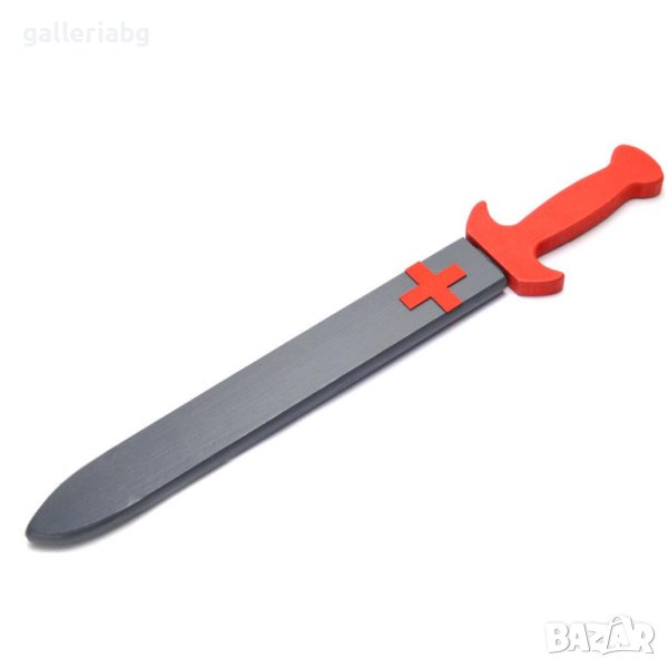Рицарски меч, изработен от дърво. Мечът е с кания, декорирана с кръст.