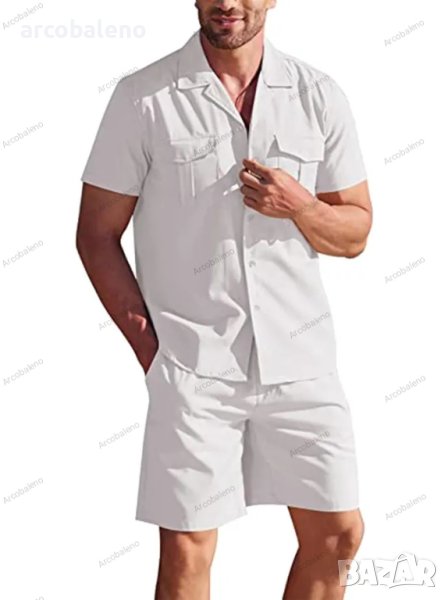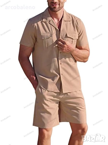 Мъжки комплект ленена риза с къс ръкав. Свободният ежедневен мъжки комплект е подходящ за много поводи, семплият дизайн прави скучния сезон пъстър и интересен. Разнообразието от опции за съчетаване ви прави уверени и красиви. Приляга плътно, без да ограничава движенията ви.