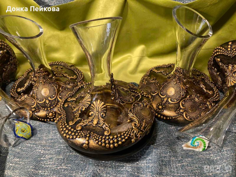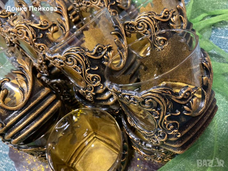 Ръчно изработен сервиз от 7 части, 6 чаши и декантер.
