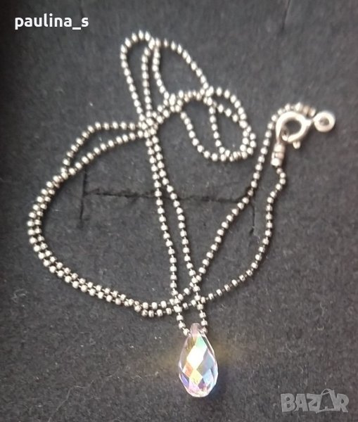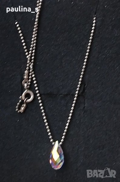 Сребърно колие тип чокър, със синджир топчета, проба 925, висулка с адаптиращи се цветове на Сваровски. Поради новите правила за заплащане на обновяванията на обявите, моля, разгледайте и последните страници на профила ми, обявите са активни.
