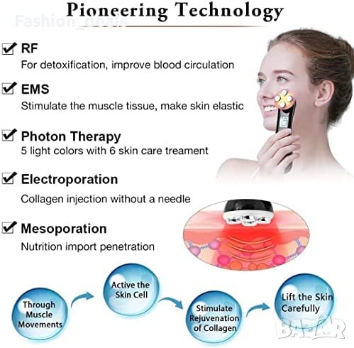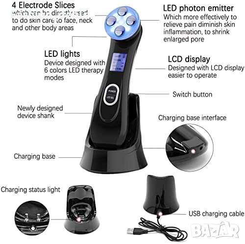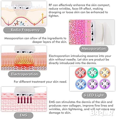 5 в 1 различни функции- RF топъл масаж+EMS+метопорация+електропорация+LED светлинна терапия