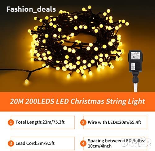20 м приказни светлини и 3 м кабел, 200 светодиода, 8 различни режима на осветление
