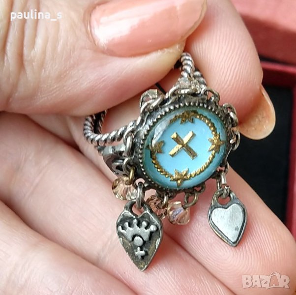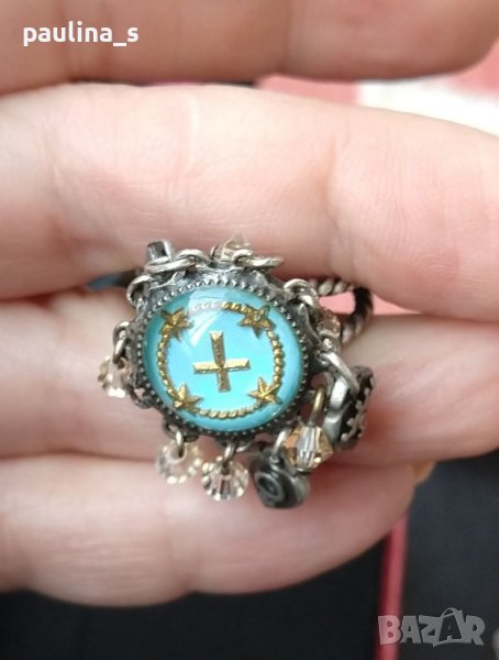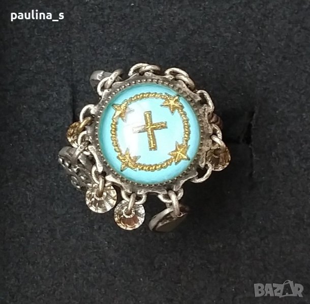 сребърен пръстен с кръст и талисмани срещу уроки, за любов и здраве. Цената е крайна 139,99лв / 65 евро. Рингът е с регулиране, така е 18мм вътрешен диаметър. Не е почuстван в автентичен вид. Уникат! Не се продава на грамаж, мащабирането е на ръката.