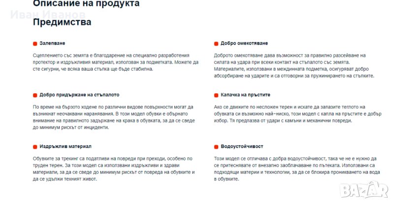 Трекинг обувките от CMP са най-доброто качество, комфорт и вечен външен вид.Чисто нови .номер 47Най-продаваният модел RIGEL LOW са обувки, подходящи за всеки сезон от годината, при различни климатични условия. Благодарение на използването на най-добрата велурена кожа, съдържаща мембраната CLIMA PROTECT в горната част , ние получаваме напълно водоустойчив и дишащ трекинг. Изпипан е всеки детайл, така че когато носите CMP обувки в модела RIGEL LOW , да се чувствате удобно и безопасно, поради което е внедрена допълнителна стабилизация на глезена, за да се елиминира рискът от нежелани наранявания и е добавен KEVLAR, от които се изпредат изкуствени влакна с висока якост на опън. Всяко взискателно планинско пътуване или обикновена разходка може да стане приятно благодарение на използването на подметки в технологията CMP FULL On GRIP , насочена към осигуряване на сцепление върху всякакви повърхности. В допълнение, междинната подметка е изработена от ултра мека и пластична EVA пяна , която намалява ударите и придава на обувките лекота. В грижата за комфорта на краката при продължителна употреба е използвана стелка ORTHOLITE , насочена към вътрешна вентилация на цялата повърхност на крака и антибактериални свойства. Освен това, допълнително предимство при адаптирането на обувките към крака е стабилното връзване, целящо по-голяма безопасност.