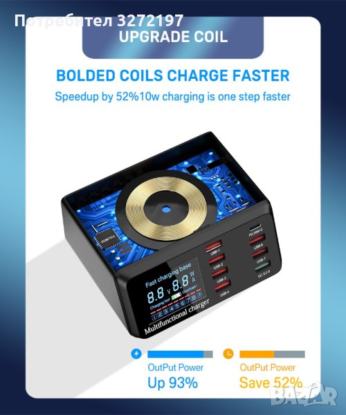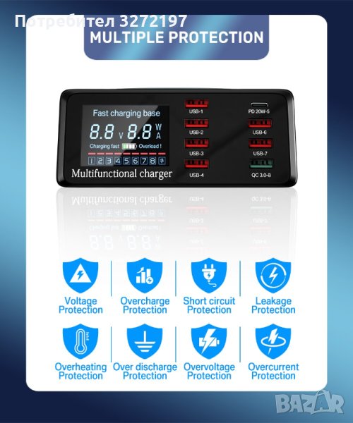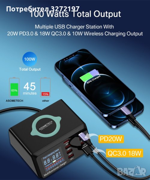 Обща мощност: 100 вата мощност поддържа едновременно зареждане на 9 устройства.
