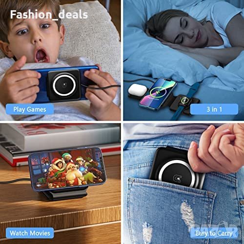 Ново Сгъваемо безжично зарядно устройство 3 в 1 бързо магнитно преносимо телефон слушалки часовник