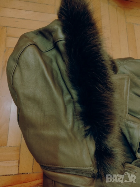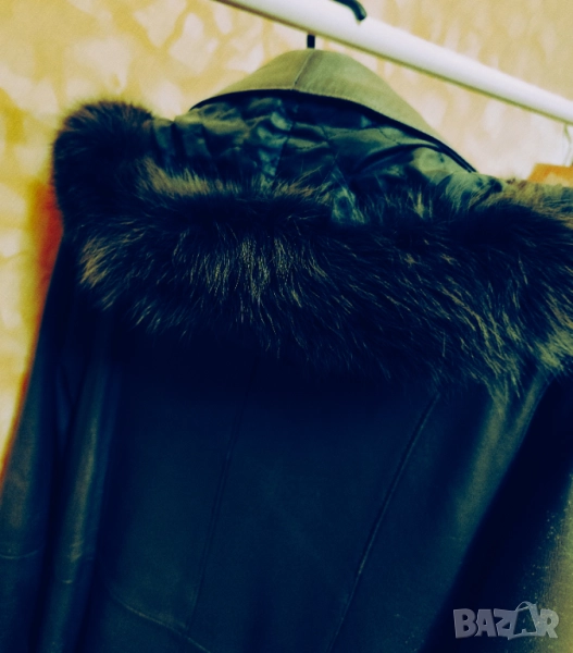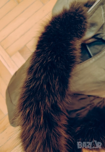 Изработено е изцяло от естествена кожа, с висококачествена лисича кожа по качулката, която добавя нотка лукс и изтънченост.