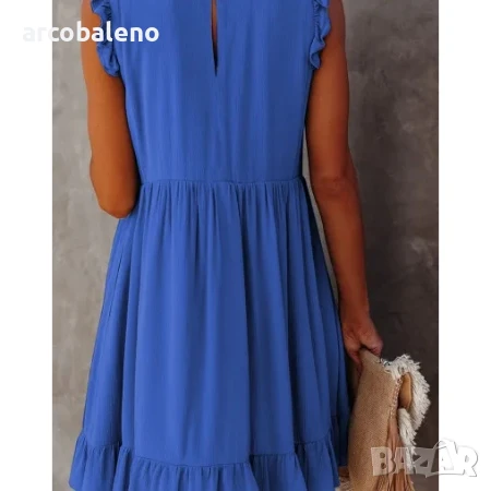 Дизайнът с волани на талията подчертава женствената елегантност.