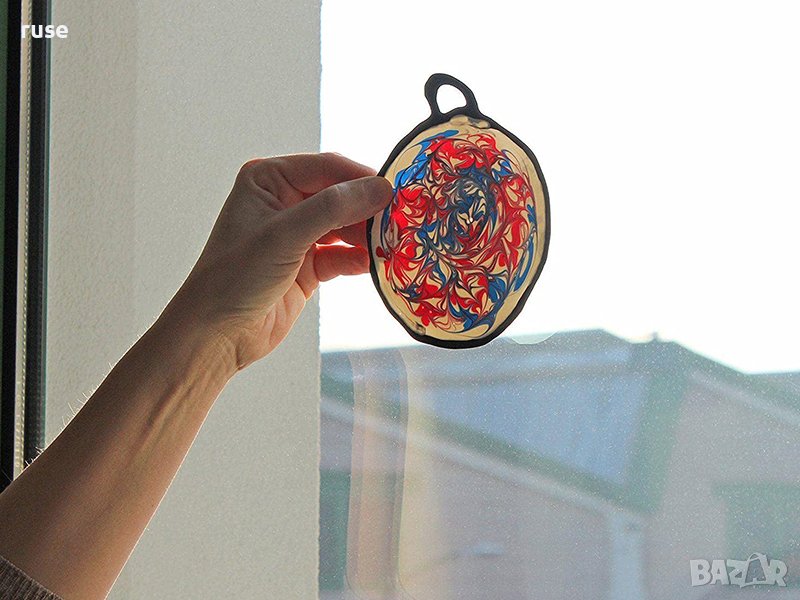 Просто нанесете един или повече слоя от цветната боя за прозорци с лесните за използване дюзи за контрол на потока и я оставете да изсъхне, докато се превърне в прозрачен еластичен филм. След това отлепете и залепете художественото си творение с възможност за повторно позициониране върху стъкло или друга гладка повърхност.