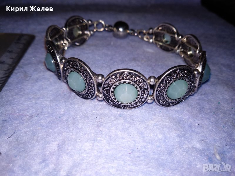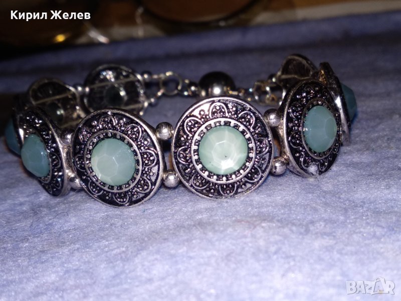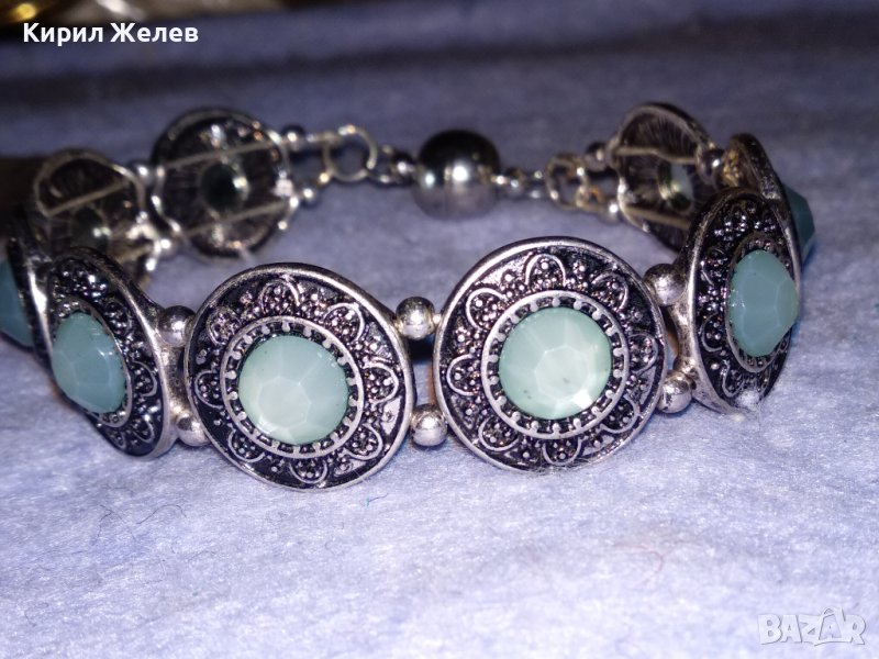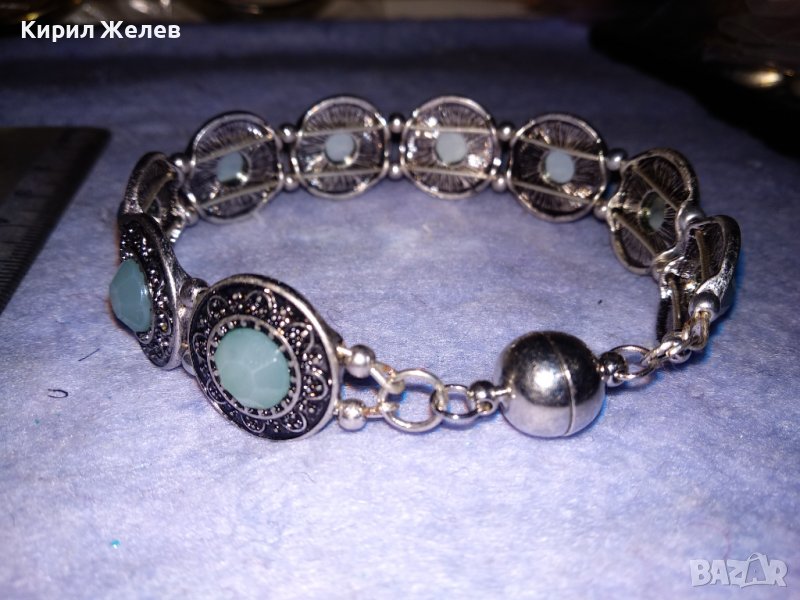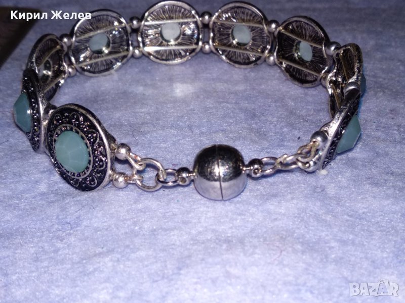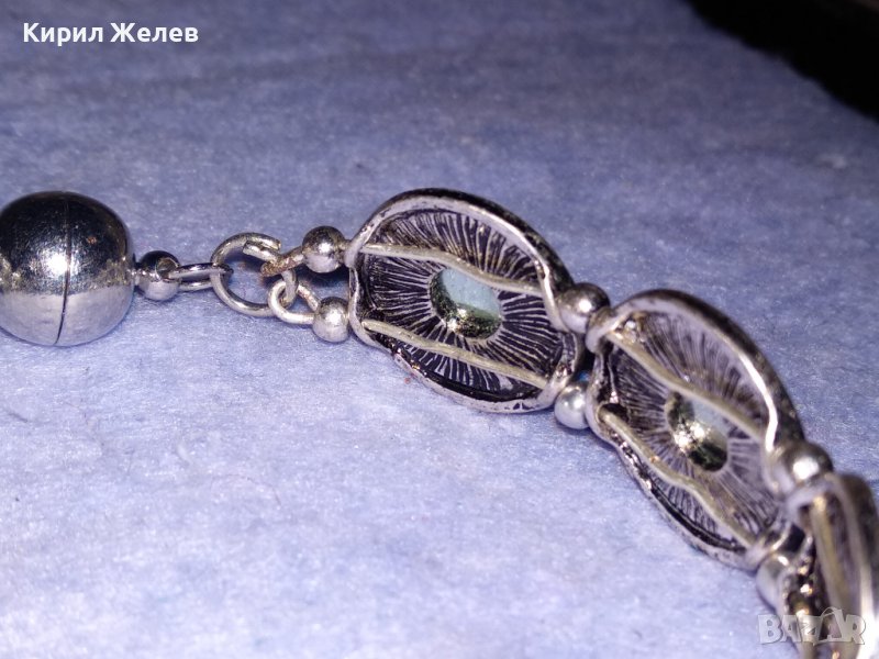 ПОСРЕБРЕНА ЛАКИРАНА АР ДЕКО СТИЛ КРИСТАЛНА ОРНАМЕНТИРАНА ГРИВНА с МАГНИТНА ЗАКОПЧАЛКА 38028 → Обява 40837056