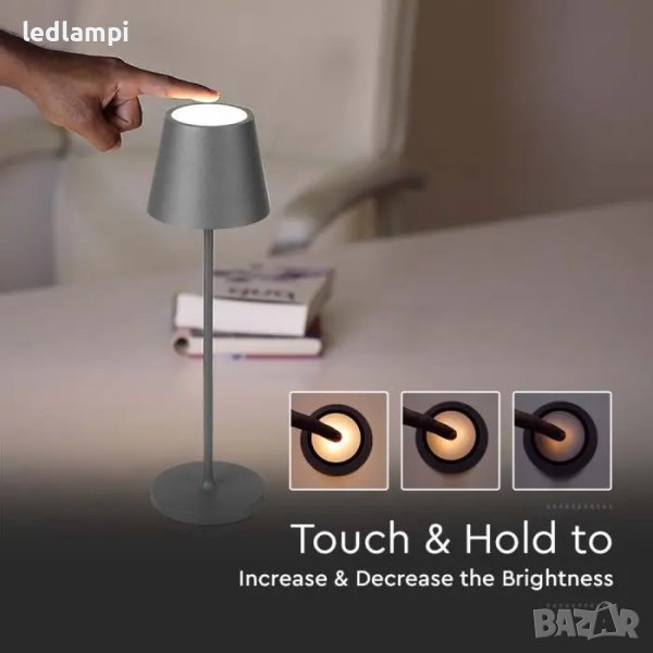 Настолна LED Лампа 3W Димиране Сива Презареждане