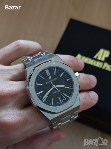 Нов Мъжки Часовник AP Audemars Piguet Сребрист с Черно Лице Механичен Автоматичен Самонавиващ → Обява 40840179