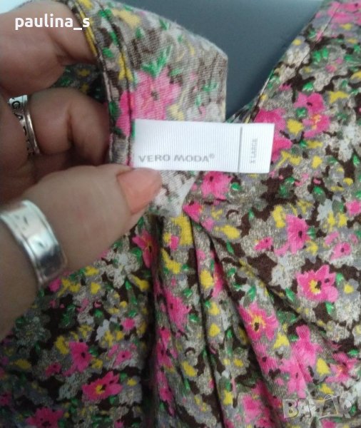 1. "Vero Moda" Весела рокля с широко и лежерно решение на горната част, която може да се носи върху топ или бюстие, долната част е от различно и много стегнато, еластично трико, като мини пола. Материята в долната част е плътно памучно трико и ликра с голяма еластичност, стои добре и в дълбок, и в плитък лежерн на горната част. Горната част е от много фино памучно трико с % вискоза, пада елегантно и ефектно, една бройка, без дефекти, покрива няколко размера.