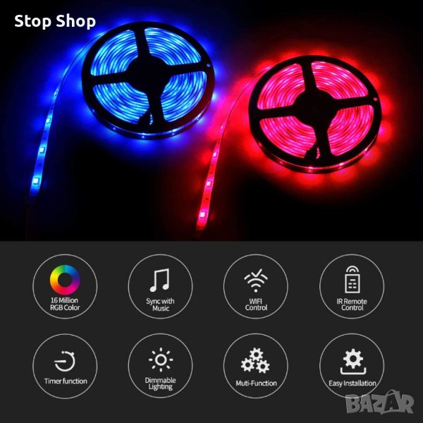 WEILY WiFi Led Strip Lights 2x15m Гъвкаво променящ се цвят RGB Phone Control Smart Led Light Str