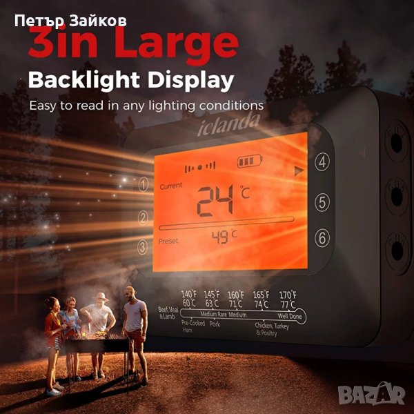 Термометър за месо iClanda, безжичен термометър за готвене, 4 сонди