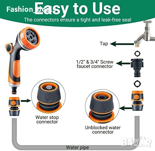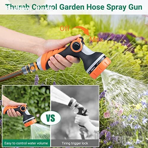 Пистолет за пръскане за маркуч с 10 шарки предлага разнообразни възможности за поливане - от фина мъгла до струя. Той е снабден с копче за регулиране на водния поток за пестене на вода и с издръжлива конструкция против изтичане. Ергономичната дръжка с TPR гума осигурява удобен и неплъзгащ се захват. Спестяващото труд заключване поддържа водата без натиск и е подходящо за всички стандартни градински маркучи. Подходящ за различни задачи като поливане на градината, миене на автомобили, почистване на прозорци и др.