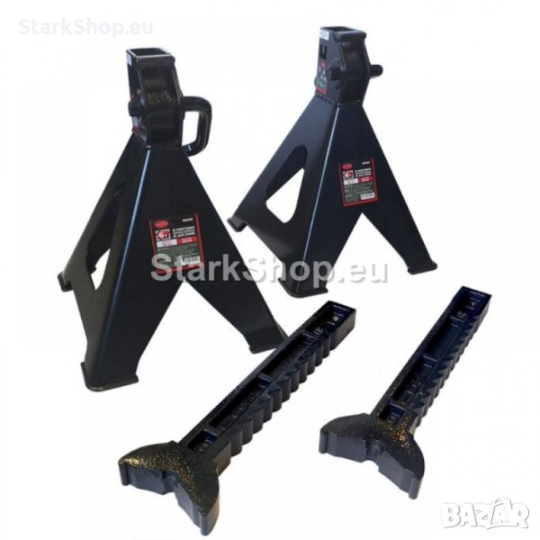 Стойките осигуряват сигурна и стабилна опора на автомобила върху специално профилирани седла. Заключващият лост ефективно закрепва опорните колони в избраната позиция. Изработени са от здрава стомана и се характеризират със здрава, заварена конструкция. Краката на криковете са със заварени широки крака, стабилизиращи опорите при работа под товар.