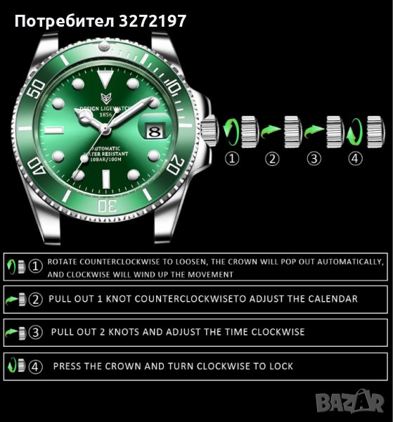 Дълбочина на водоустойчивост: 10 бара