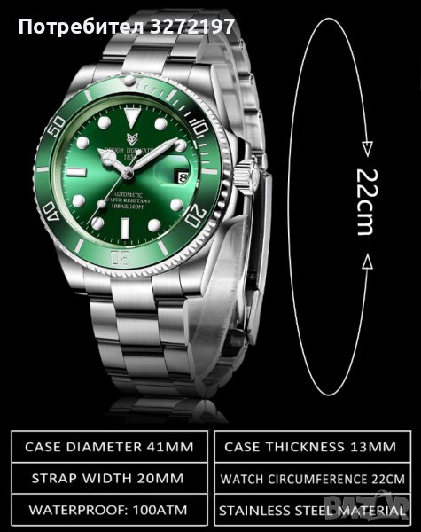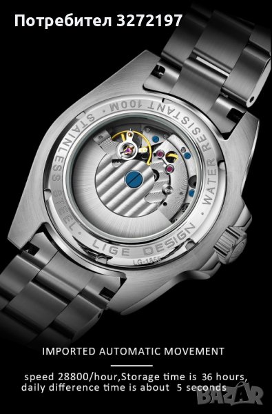 2022 LIGE автоматичен часовник за гмуркане 100 ATM