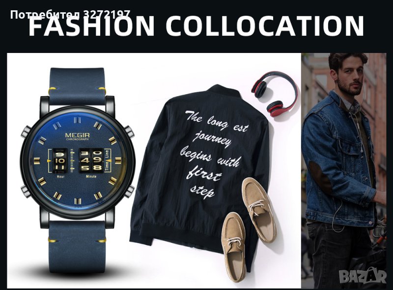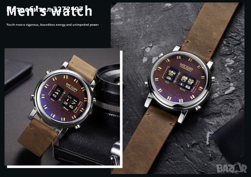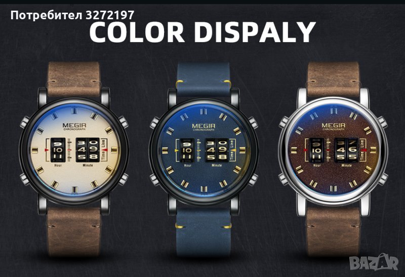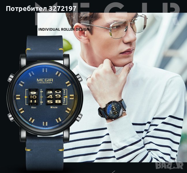 MEGIR кварцов -ролков/барабанен мъжки часовник