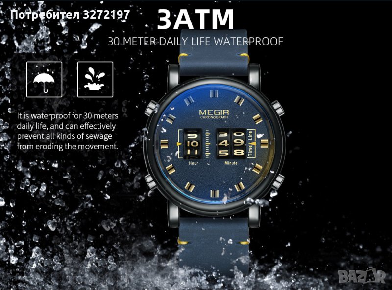 Дълбочина на водоустойчивост: 3 бара