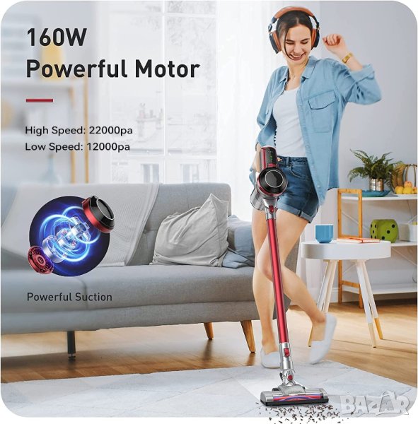 прахосмукачка 22000Pa, прахосмукачка 4 в 1 без кабел, мощна, до 45