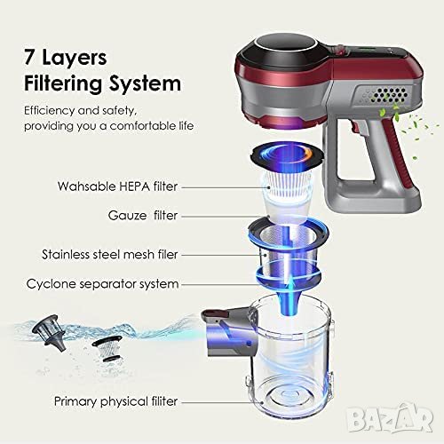 W мощност, 22 kPa актуализирана всмукателна мощност】 Безжична
