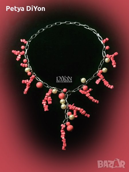 Дамски комплект гривна и колие от естествени камъни-корал и перли → Обява 40853609