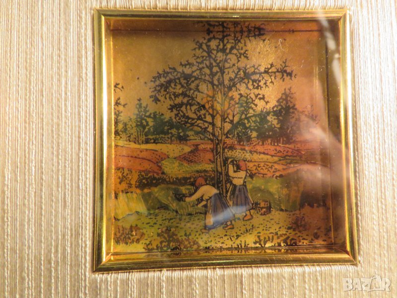 Стара Сребърна картина - трудещи се жени на полето проба 800 и с рисувано златно фолио с маркировка за сребро 800 - за ценители и колекционери и сертификат за автентичност на гърба