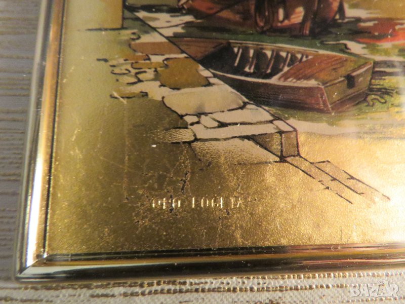 голяма стара златна картина - две стари лодки с рисувано златно фолио с маркировка за злато ( 23 карата ) и сертификат за автентичност на гърба - за ценители и колекционери .