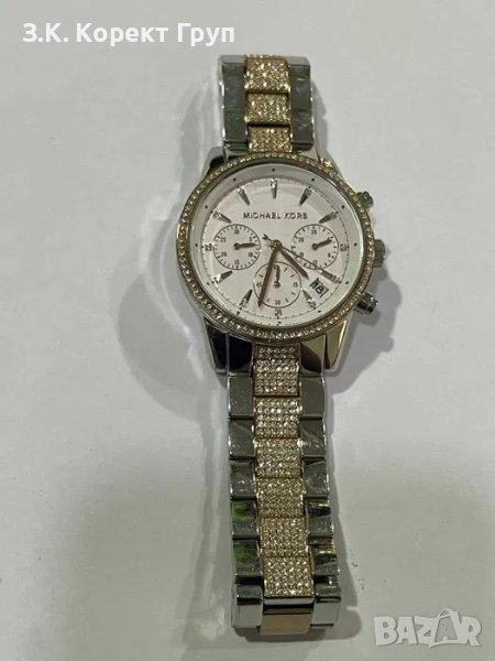 Материал корпус: Благород на стомана с частично розово-златно PVD покритие и инкрустирани кристали върху безела