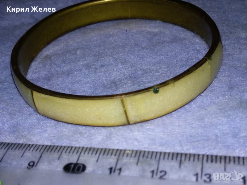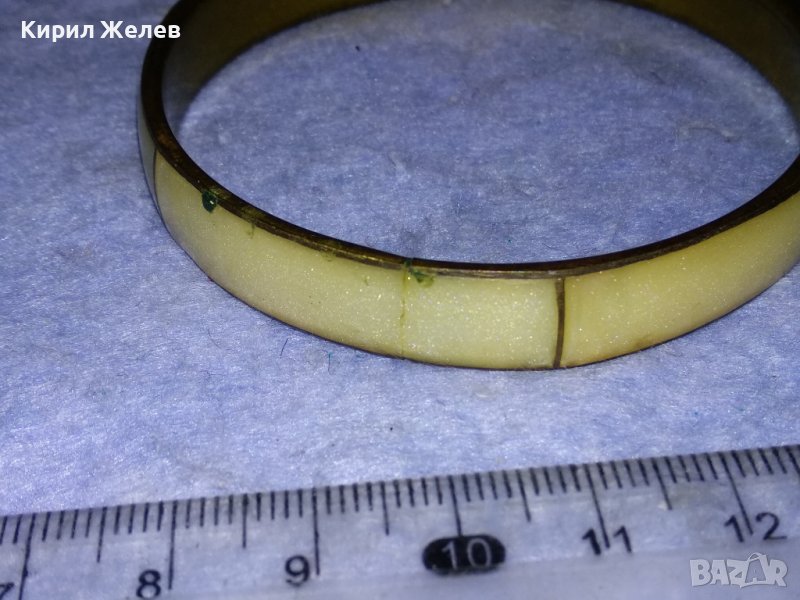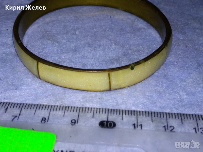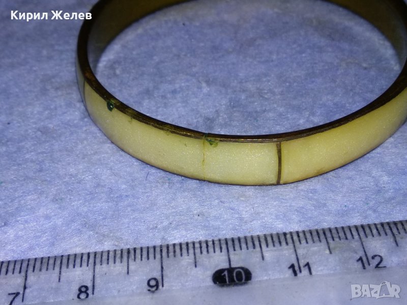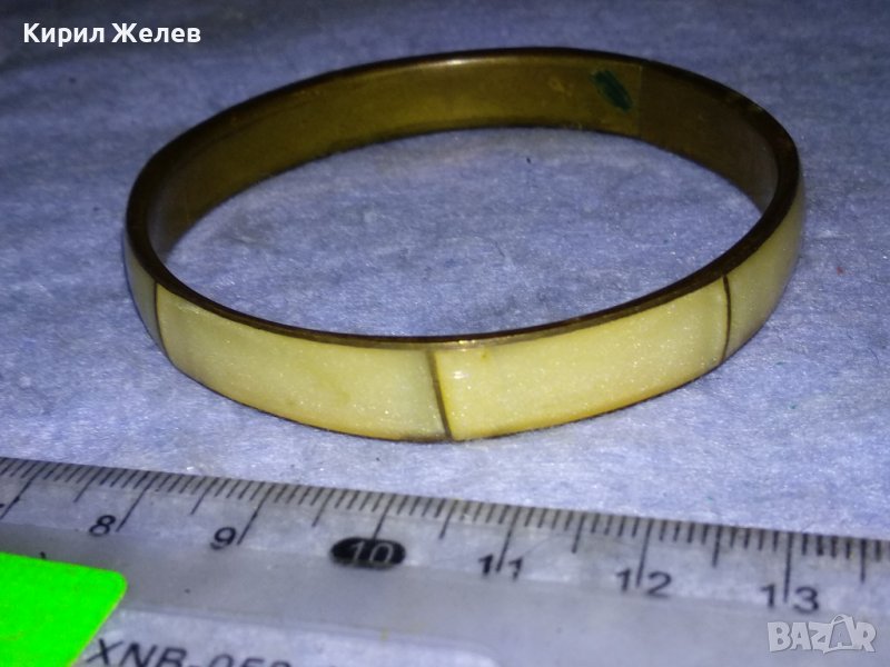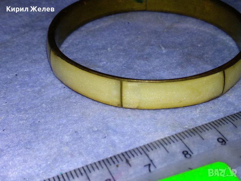 СТАРА БРОНЗОВА ТРАДИЦИОННА РЕТРО ГРИВНА с ШЛИФОВАН ПЕРЛЕН ЯСПИС РЪЧНА БИЖУТЕРСКА РАБОТА 37973