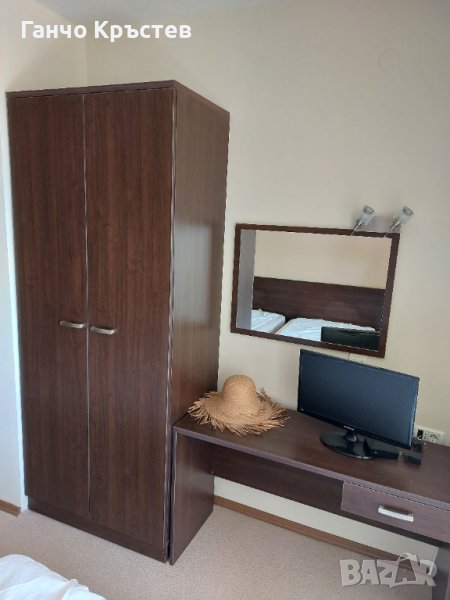 Апартамента е с изглед към морето, града и планината. Намира се в четири звездният апарт-хотел Казабланка и има следното разположение: Дневна, кухненски бокс оборудван с всички домакински прибори, порт манто, тоалетна; Голяма спалня, баня с тоалетна, Обща тераса, климатизация, интернет, цифрова телевизия, собствени електромер, водомери за топла и студена вода. Такса за поддръжка: 670 евро годишно. Плажът е непосредствено пред комплекса.
