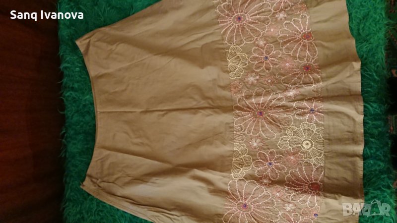 Дамска лятна пола, материята е памук, има много нежна машинна бродерия, размер М. Има подплата.