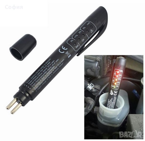 Компактен, висококачествен тестер, който бързо и с висока точност измерва наличнието на вода в спирачната течност на Вашия автомобил, независимо от марка и модел. Достатъчно е да потопите електродите на тестера в резервоара за спирачна течност и да прочетете индикацията на управляващите диоди. Той показва ясно степента на вода, съдържаща се в светодиода. Високото съдържание на влага ще доведе до по-ниска точка на кипене и ще повлияе спирачните показатели.