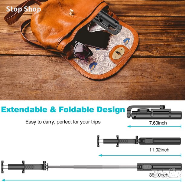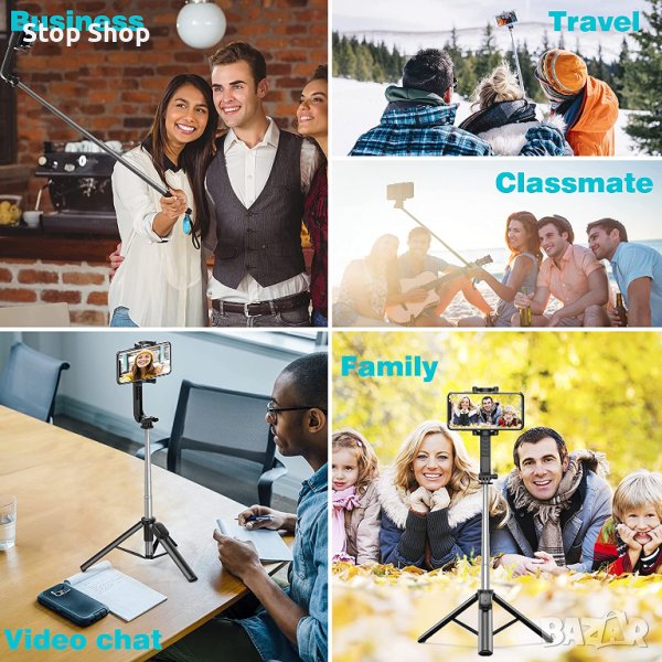 Селфи стик трипод Безжичен с блутут дистанционно, Универсален за всички мобилни телефони, разтегаем