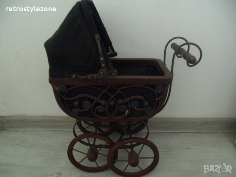 стара декоративна дървена детска количка