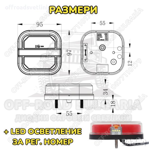 2 БРОЯ 12V Диодни стопове за джипове, ремарке, платформа 9.5 cm