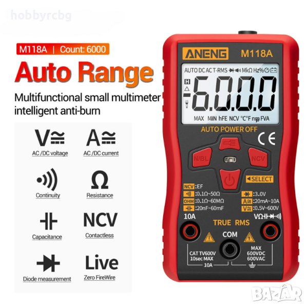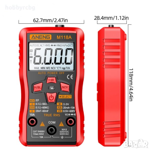 В допълнение на всички екстри, той има фенерче и безконтактен тест за откриване на напрежение. Мултиметър M118A е идеален инструмент, както за ентусиасти, така и за професионалисти.