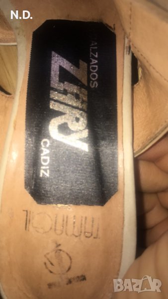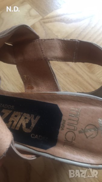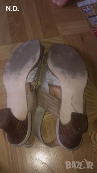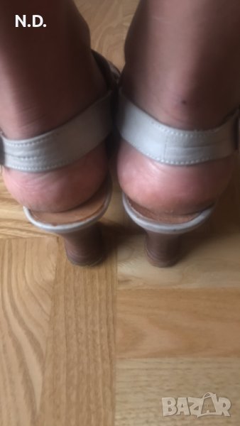 Бежеви дамски сандалети от естествена кожа с ток 6 см, размер 37 → Обява 40871712