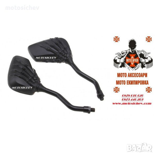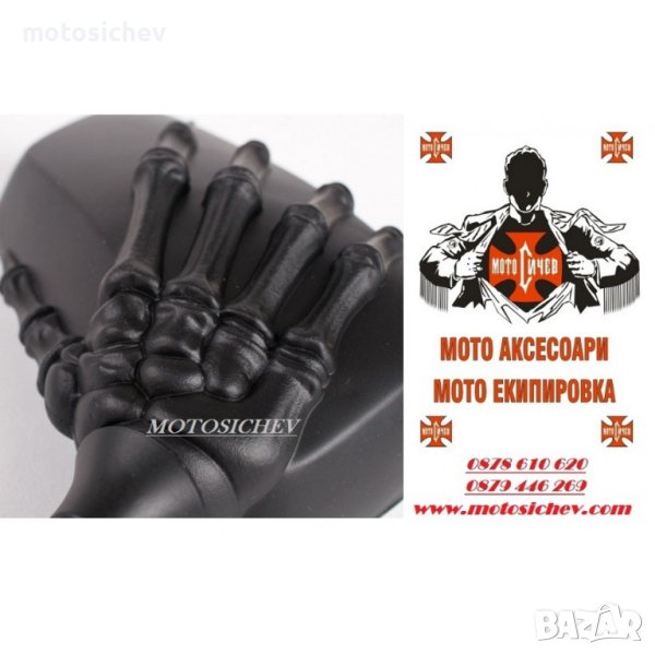 МОТОЦИКЛЕТНИ ЧЕРН ЛАК ОГЛЕДАЛА - РЪКА НА СКЕЛЕТ.
