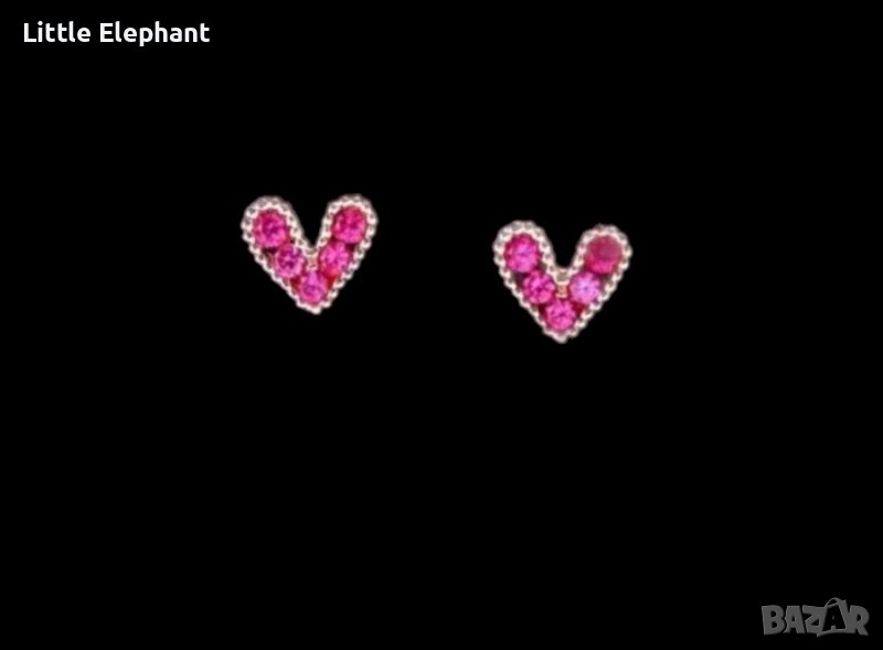 Сребърни обеци сърца,dark pink с кристали,колекция"Hearts",Gold/нови → Обява 40875221